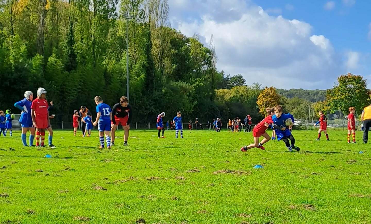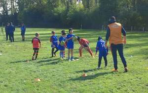 Plusieurs ateliers pour que nos jeunes apprennent à se déplacer vers l’avant, pour pouvoir marquer des essais et savoir se placer correctement sur le terrain.